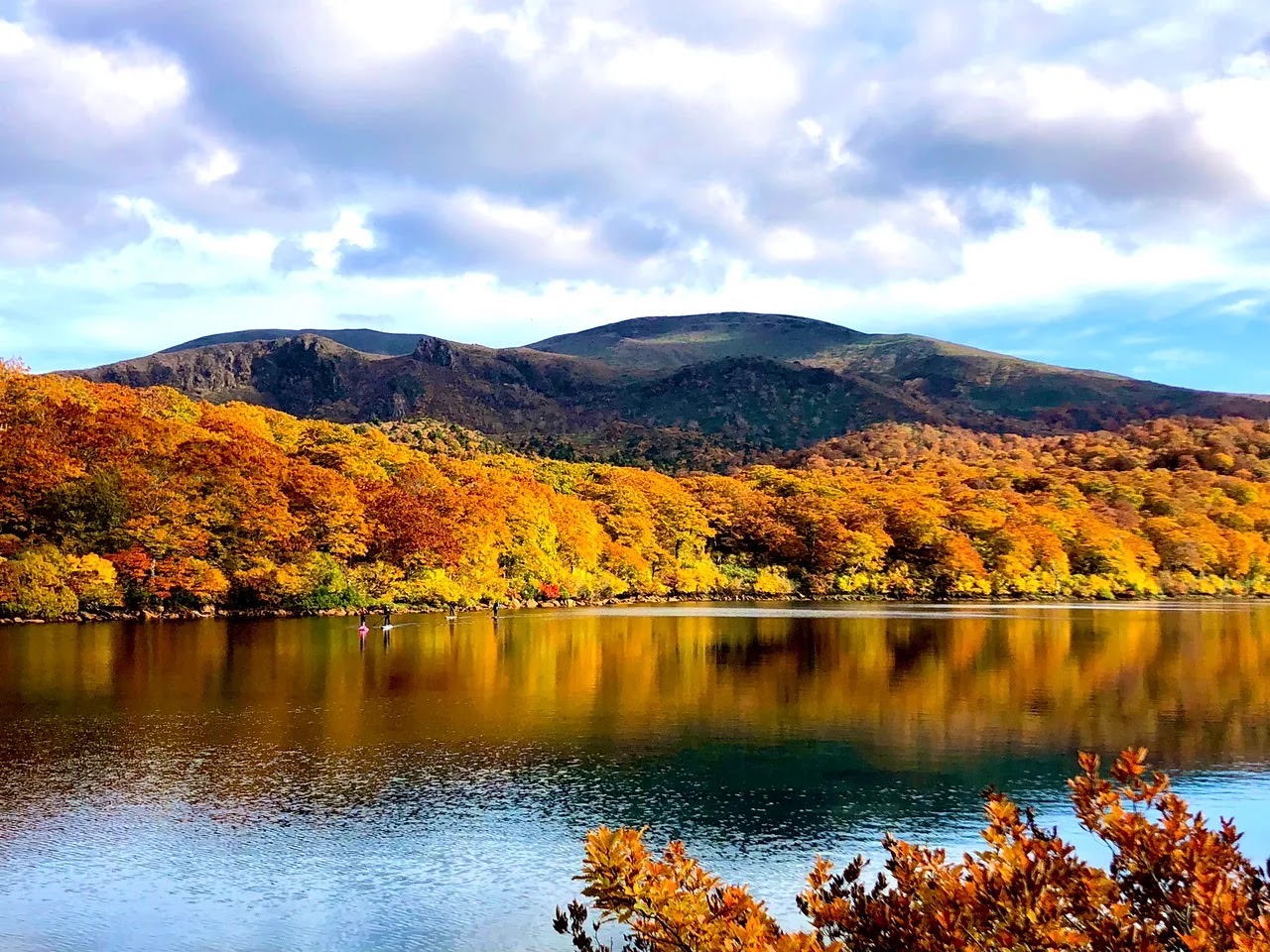 など、様々な木々が鮮やかに色づき、大自然のアートを創り出しています。湖面に映る紅葉の景色も格別でした。